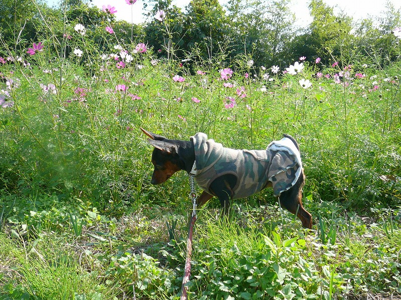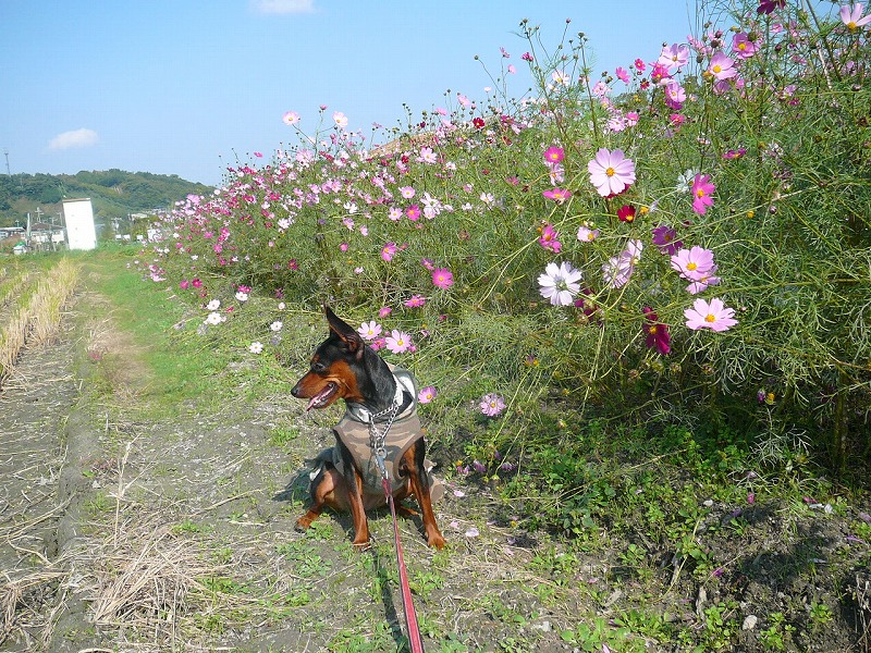 コスモス畑のあたりは子供たちの通学路にあたっているみたいで、そして、子供たちのこと、道路から外れて畑のわきとかガンガン通っていってました^^