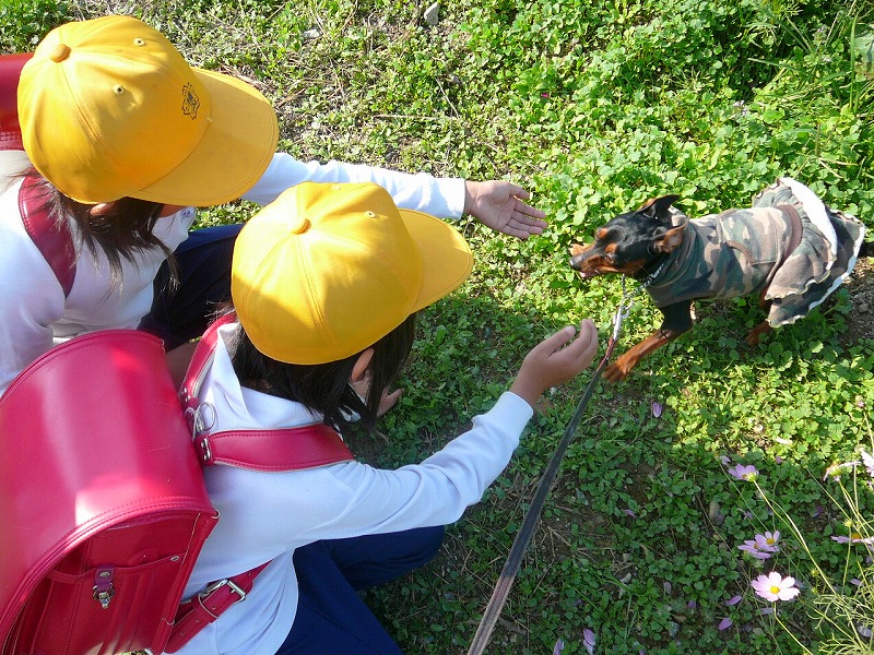 小学校が近くにあるので、下校途中の子らと遭遇!(内心「うわ~大丈夫かな~?とちょっとドキドキ)