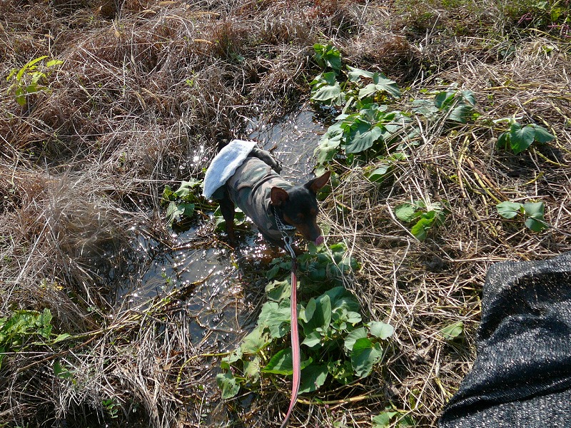 ↓水溜りを見つけて大喜びで入ってしまったチャム^^;