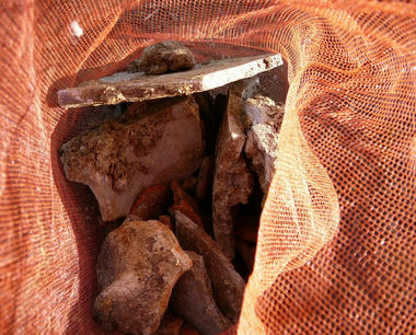 土器のかけら、いちおうブルーシートで全面覆ってあるんですが、シートをそぉ~っと捲って、勝手に撮影してしまいました、見つかったら怒られます~~~