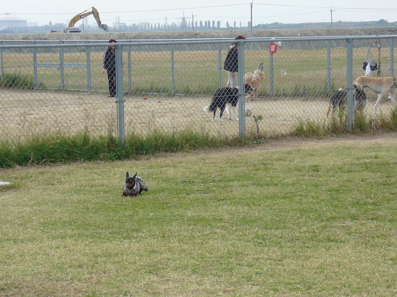 お隣のフリーエリアにはサルーキー(多分)など大型犬で賑わっているのに、こちらはなんと寂しい…