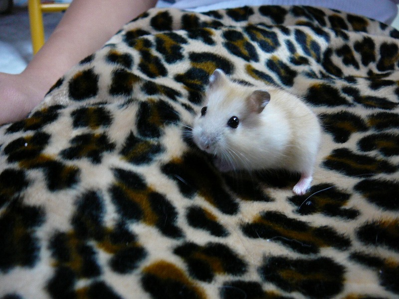 先日亡くなったコはノーマルジャンガリアンだったので、毛色が違うんですが(汗)、その辺は、突っ込まれても大丈夫なようにしてます~フフっ。