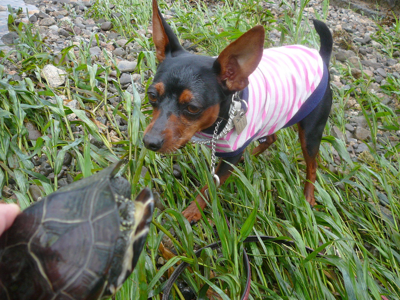 またまたカメさんに遭遇、このカメも逃げないんですよ。