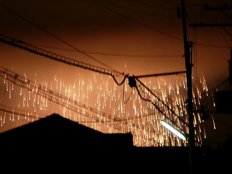 縮れ麺みたいで、そして綺麗な緑と赤の火、写真で見て面白~いと思いました。