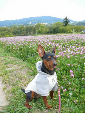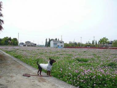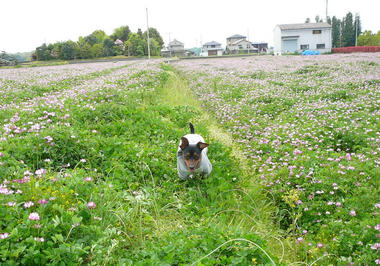 一面のレンゲ畑…ホントは、ここを思いっきり走らせてあげたい~