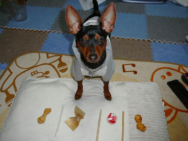 あんなにオヤツ目の前にしてカメラ目線なチャムちゃんはお利口さんですね。
