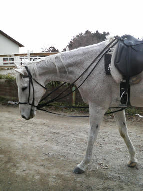 芦毛さん、折り返し手綱ついてるんですねえ。