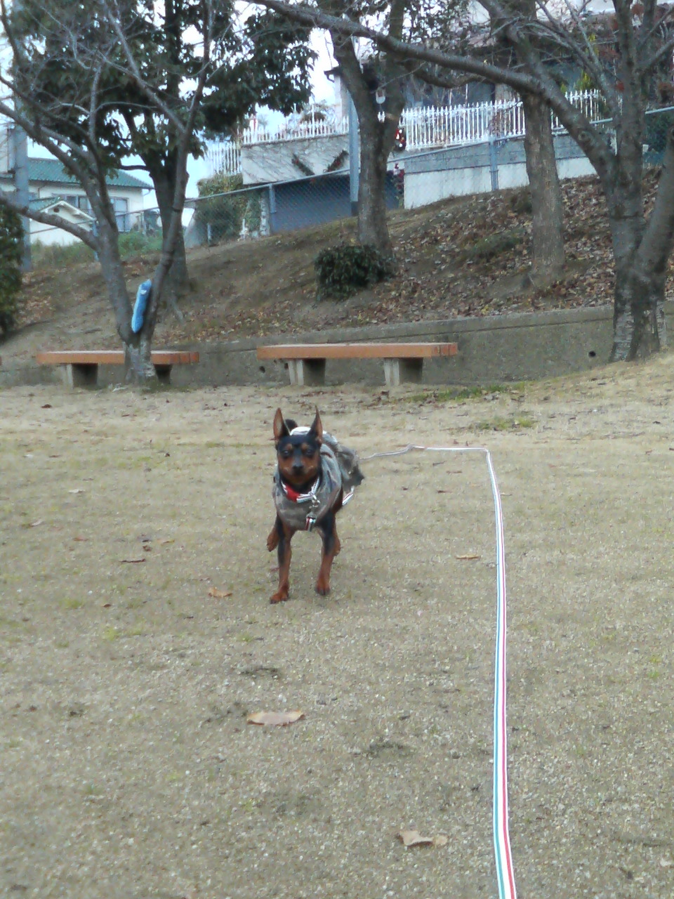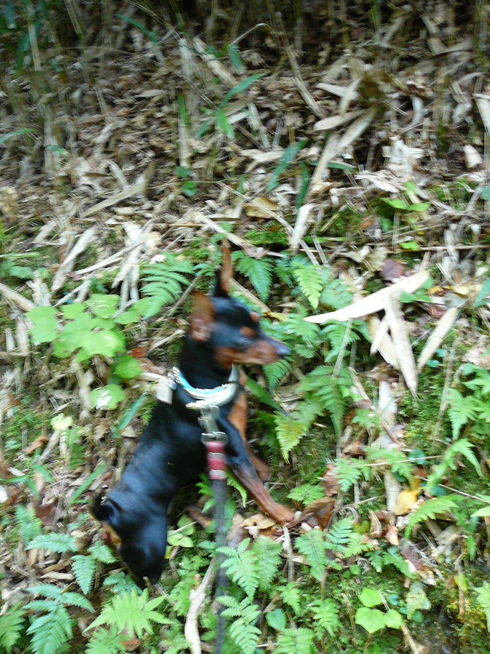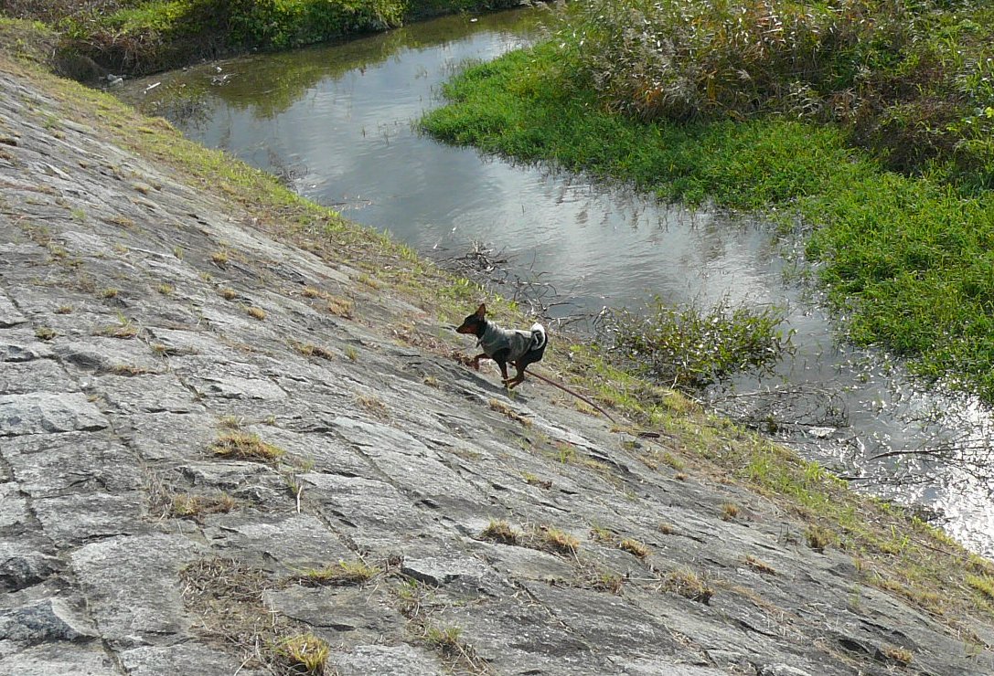 今日のルートは足場少々悪いし、急な下り階段あるので、引っ張られるとホント危ないのですが、思いつきのこの方法で、今日は安全に散歩が出来ました。