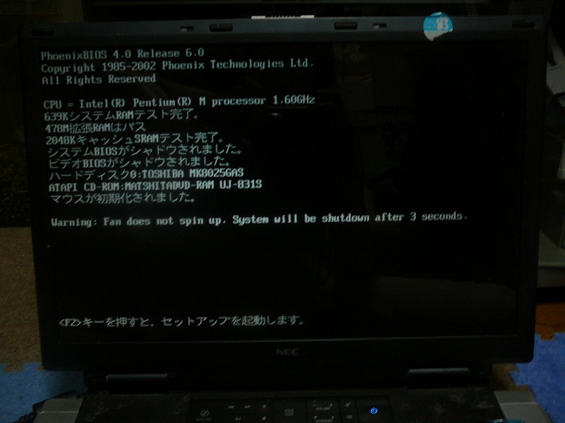 こんな画面が出て、電源が落ちてしまうのです。