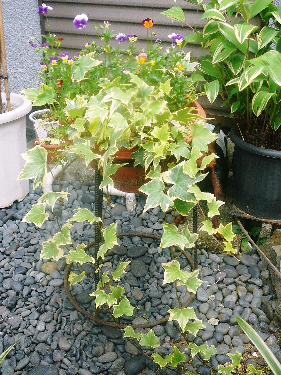 私の唯一のガーデニング?の寄植えなんですが、アイビーがいい感じに伸びました^^