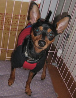 保健所に迷子で収容されていたミニピンが期限が切れてしまったので保健所より引き出しました。