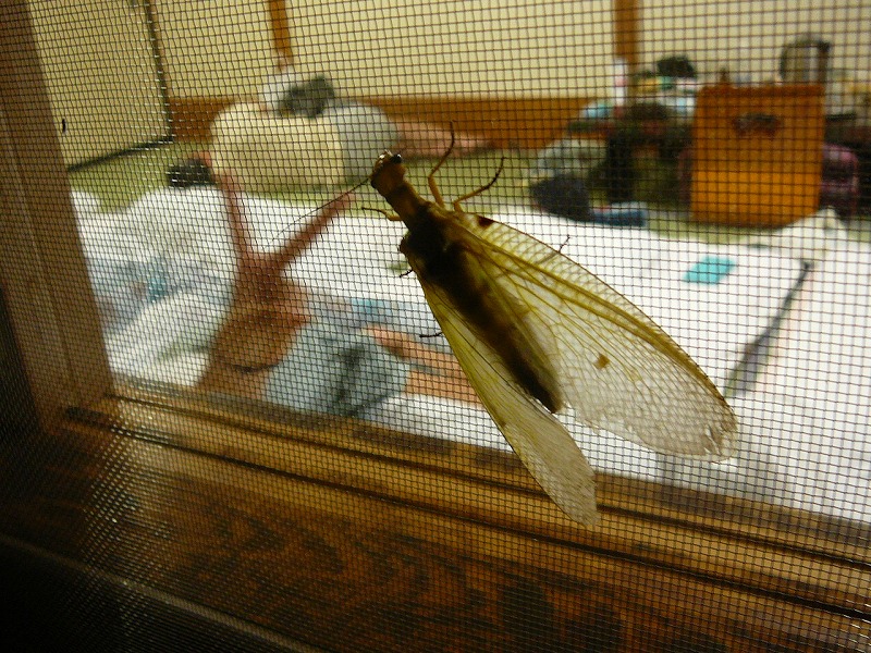 部屋の明かりに引き寄せられてやってきた謎の虫。