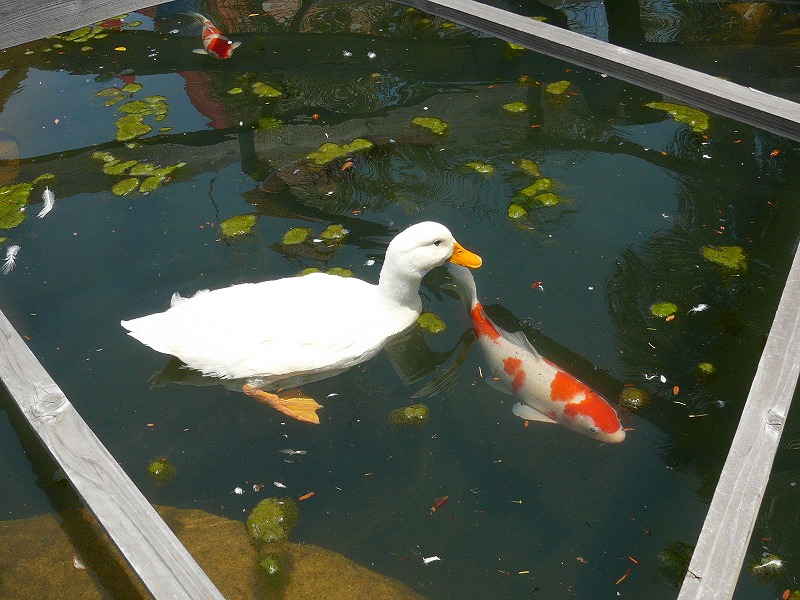 アヒるんるんと鯉