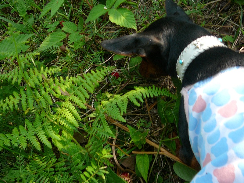 チャムは野いちご狩。