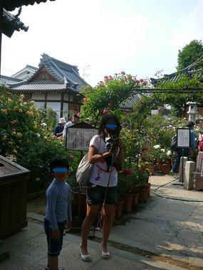 古い住宅地の中にポツンとある、ごく普通のお寺みたいですが、中に入るとバラ、バラ、バラの競演