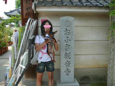 実は、このお寺には犬・猫同伴禁止でして(がっかり…)なので、入り口近くでチャム入れて記念撮影しました~。
