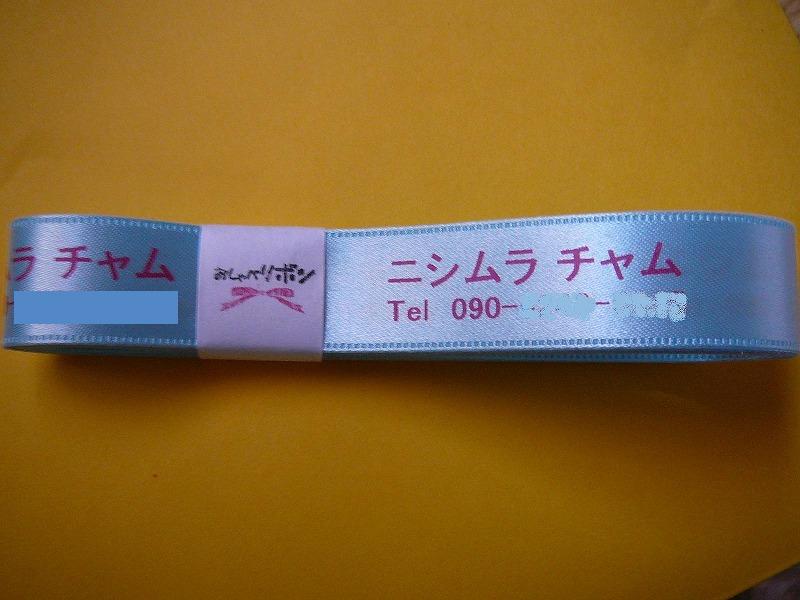 こちらの商品は普通のサテンのリボンに名前等をプリントしたものなのですが、お値段はずっとずっと安いんです、ゼロひとつつけ忘れ?ってくらい(笑)