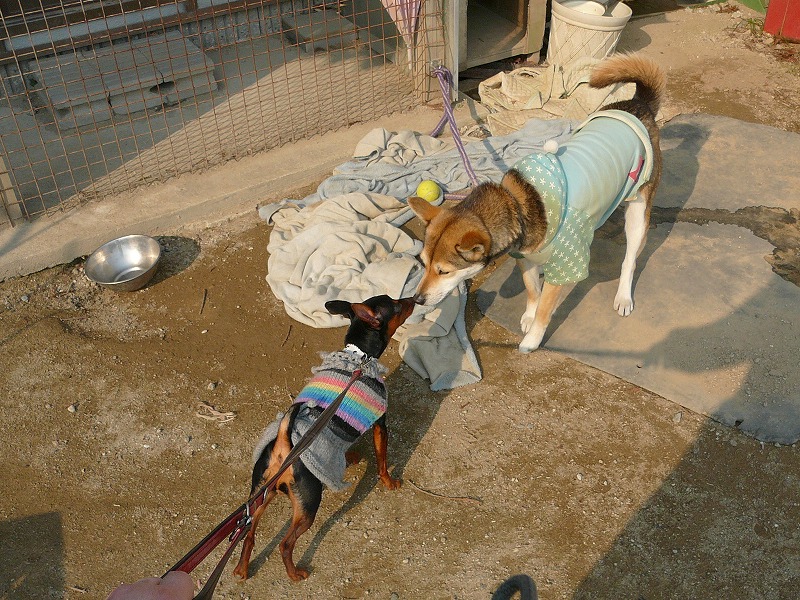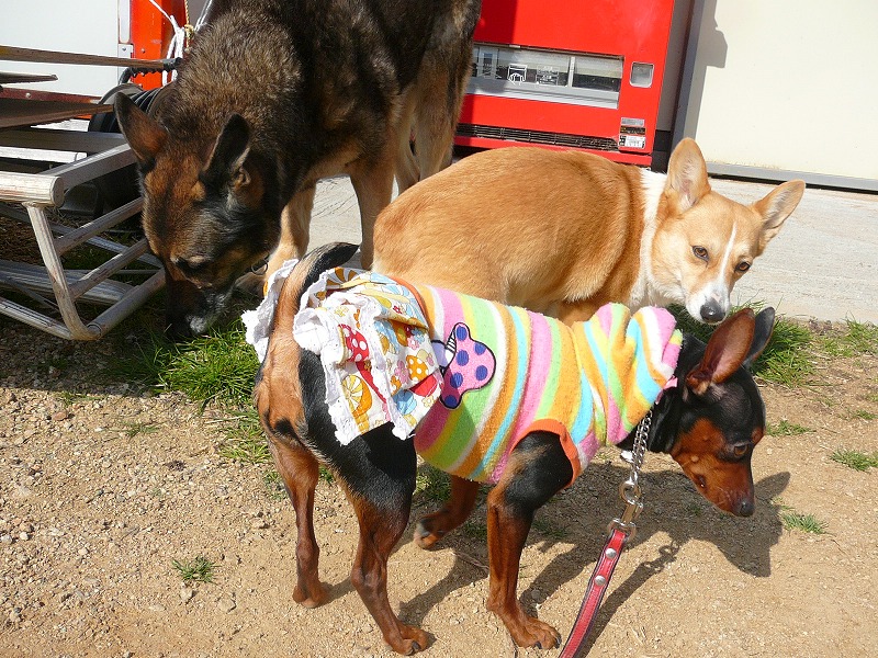 ↓の写真は、帰りに撮影したものですが、シェパード君と一緒にいても騒いでいません♪