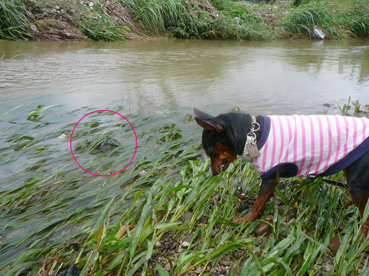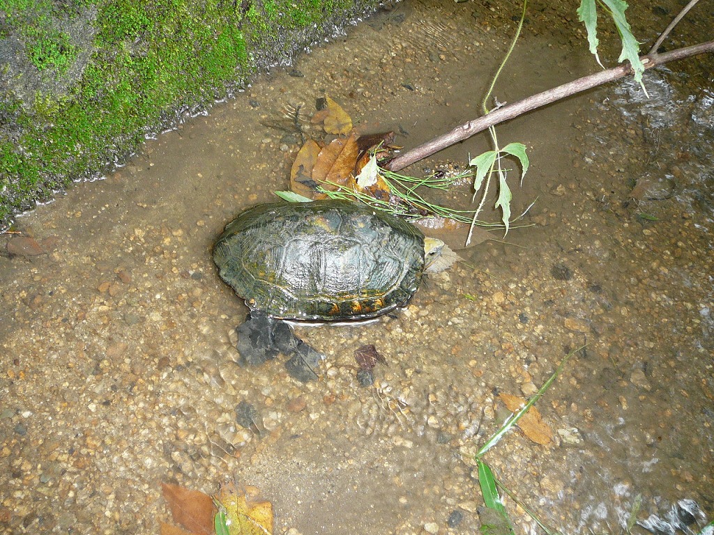 ザリガニのいた側溝近く、翌日にはカメがいました~。