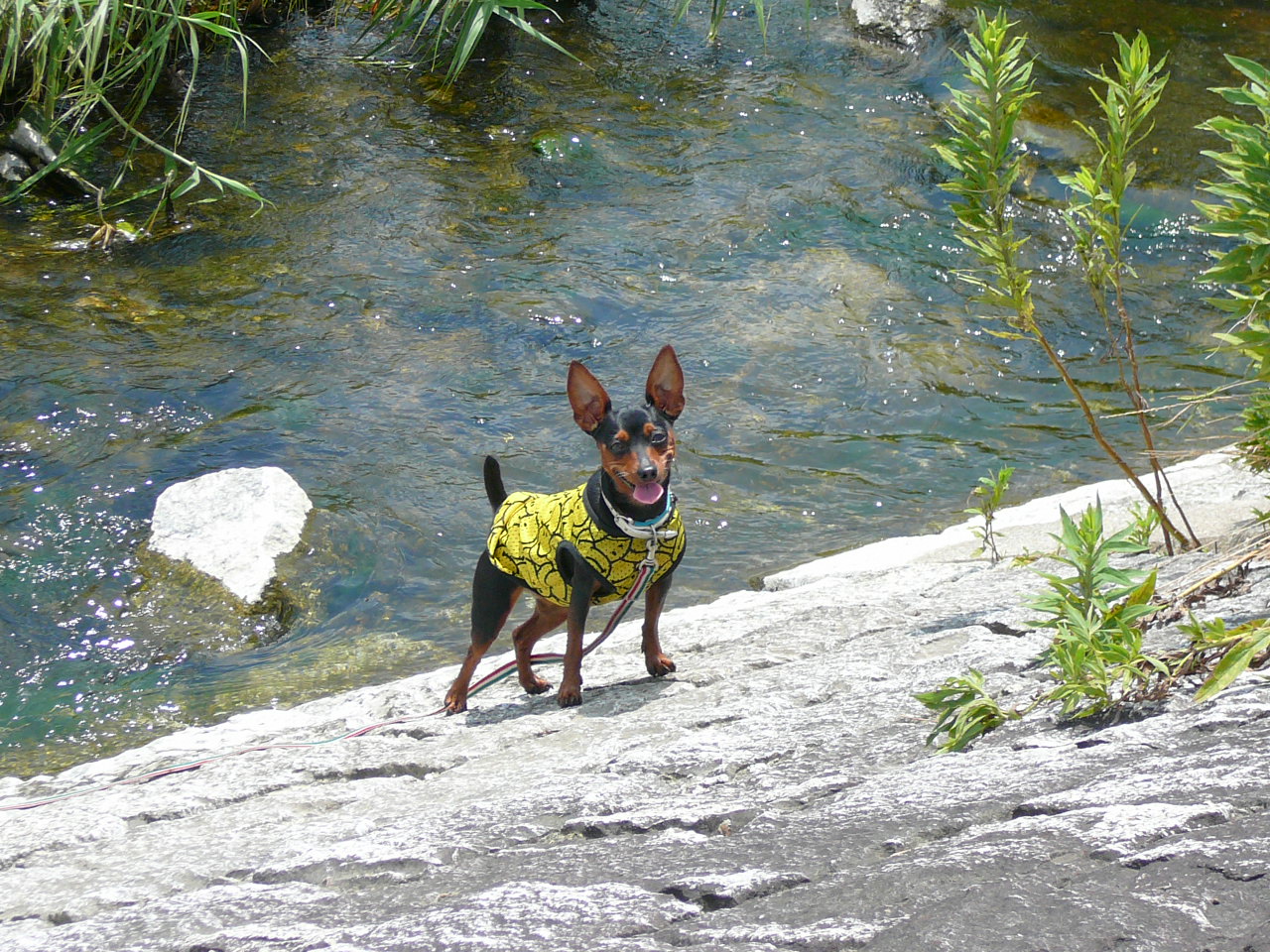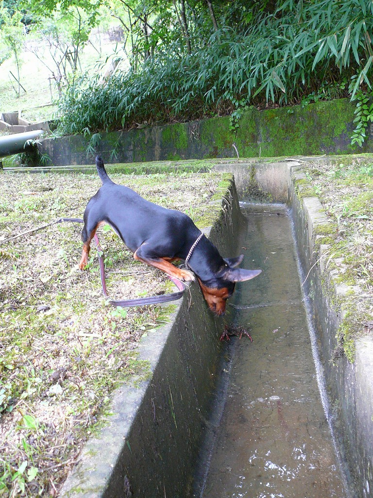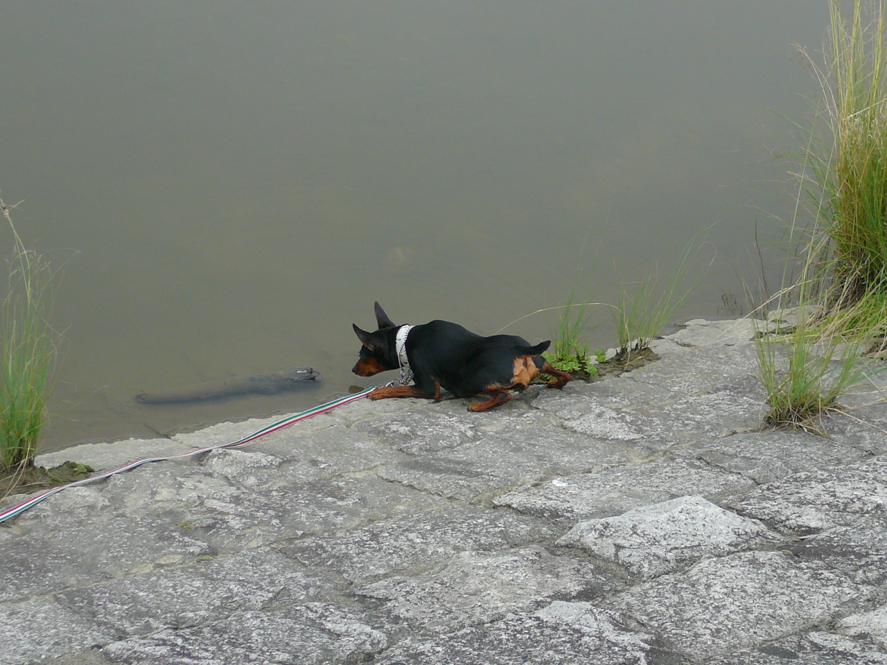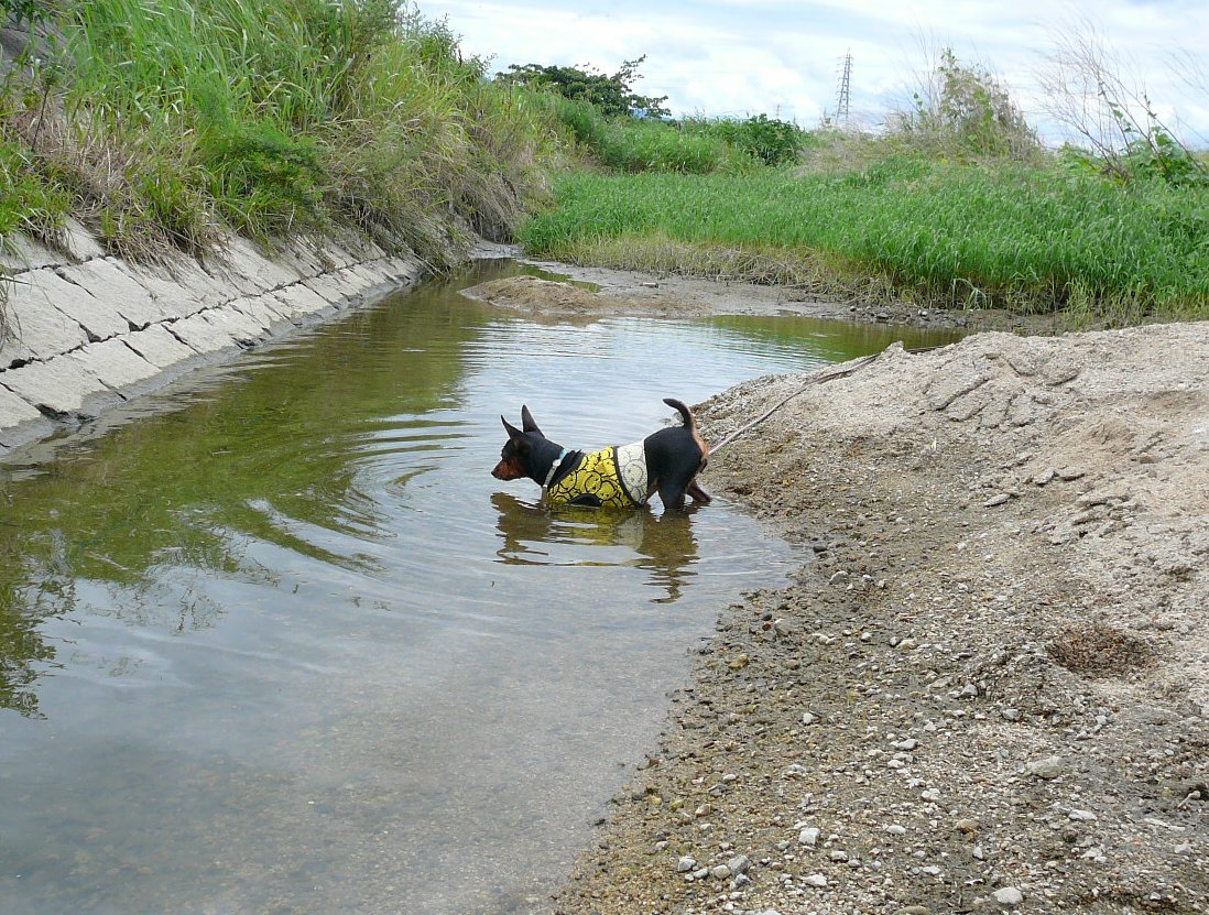 ここは小魚がいるスポット、チャム、いつものように興奮して水の中へ…。