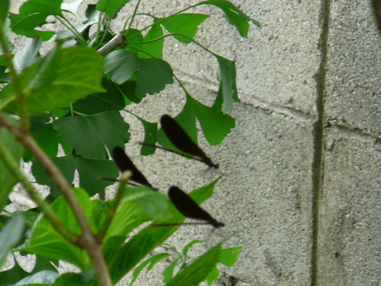 某所で、川トンボ?名前わからないのですが、黒い羽のトンボが大量にいる場所を発見!