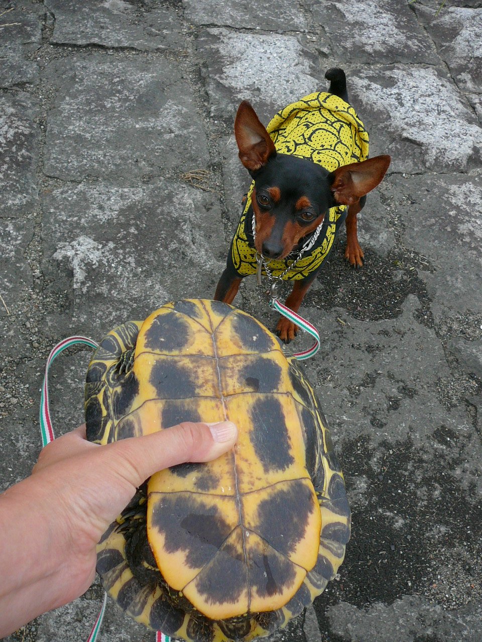 またまたカメさんに遭遇、このカメも逃げないんですよ。