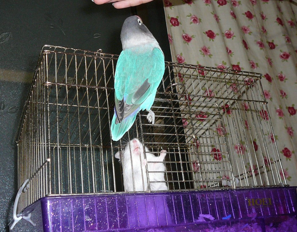 ウチにはほかに猫のだんちゃん(1991生まれ)、ブルーボタンインコのインコ(2002年生まれ)、オカメインコのポポ(2003年生まれ)、ジャンガリアンハムスター、金魚2匹がいます♪