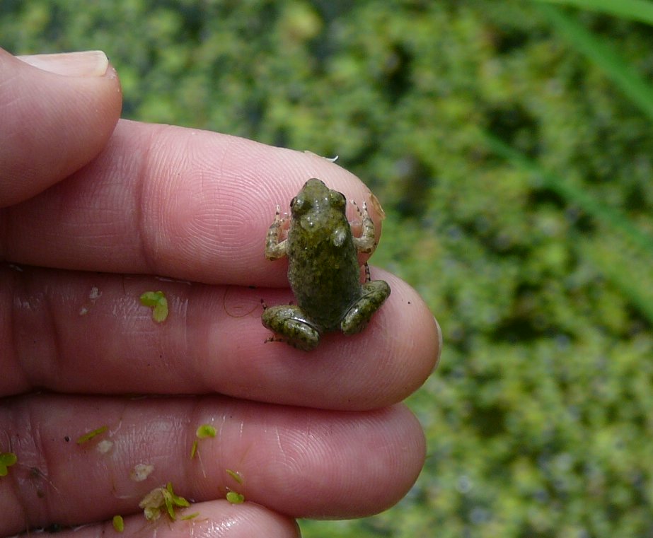 浮き草のジュウタンの上にアマガエルがた~くさん乗っているんですよ~♪