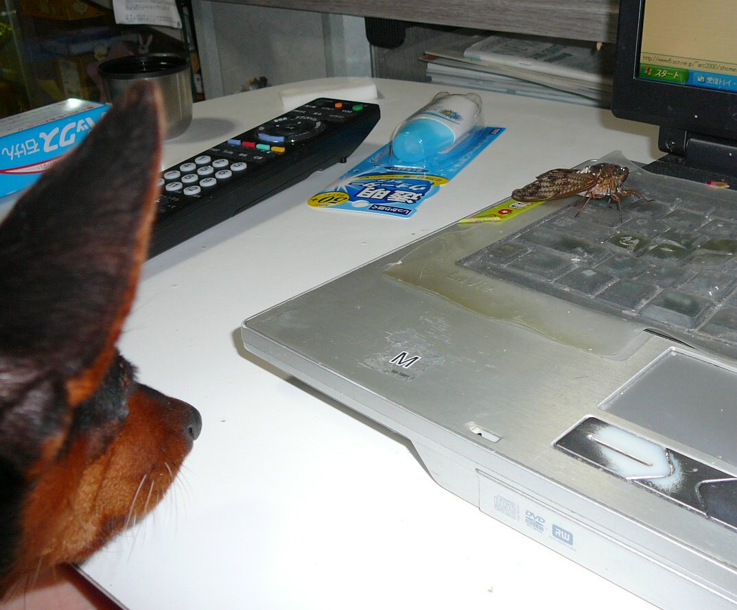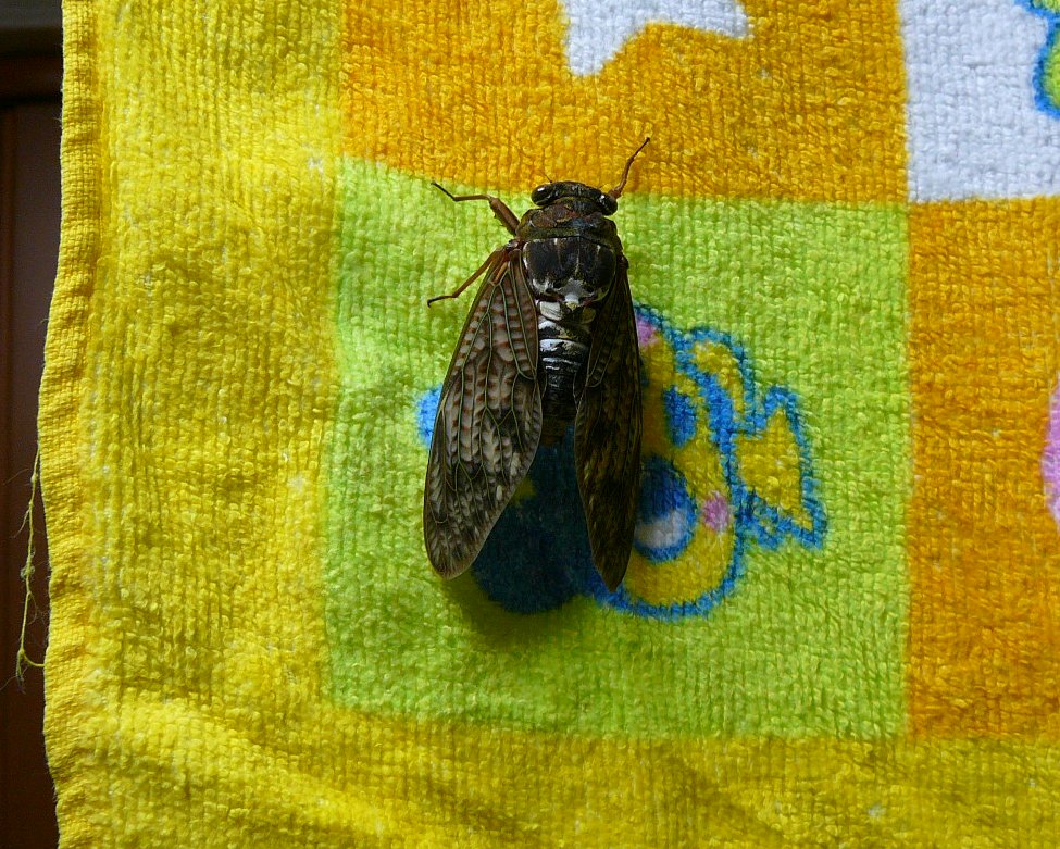 ゆうべ、ベランダから洗濯物とりこもうとしたら、セミが飛び込んできました、ビックリ!