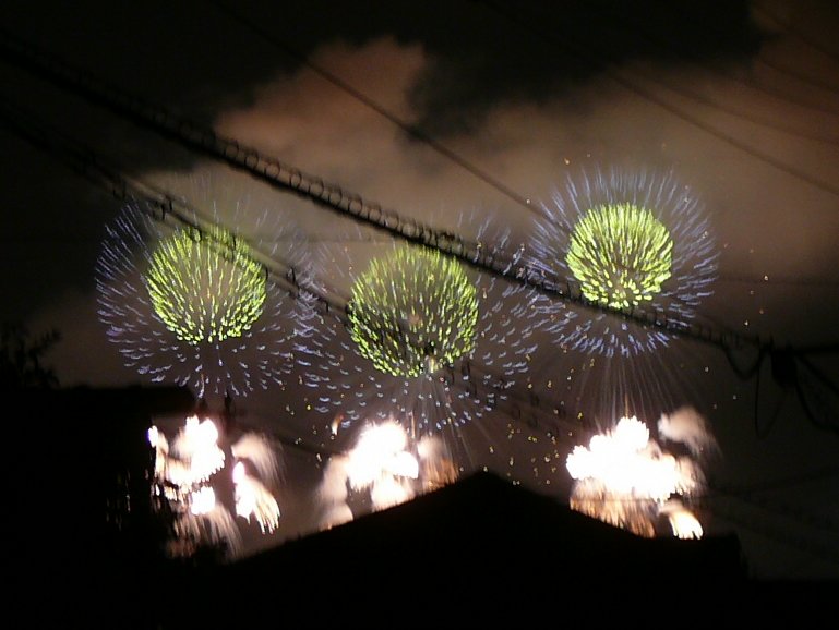 だからと言って、私はこの花火を毎年楽しみにしているわけではないのですが(もう年寄りなので冷めてます^^;)とりあえず、時間になったら外に出て鑑賞です。