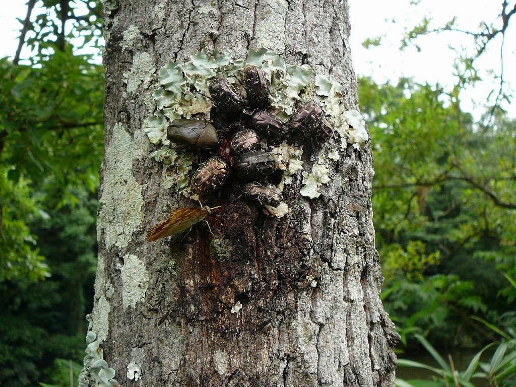 トンボの近く、クヌギの木に昆虫がワラワラたかってました…。