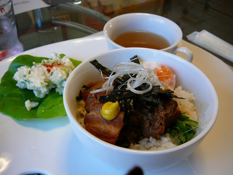こちらは私の頼んだランチA「豚の角煮丼セット」半熟卵もお肉もおいしかった~。