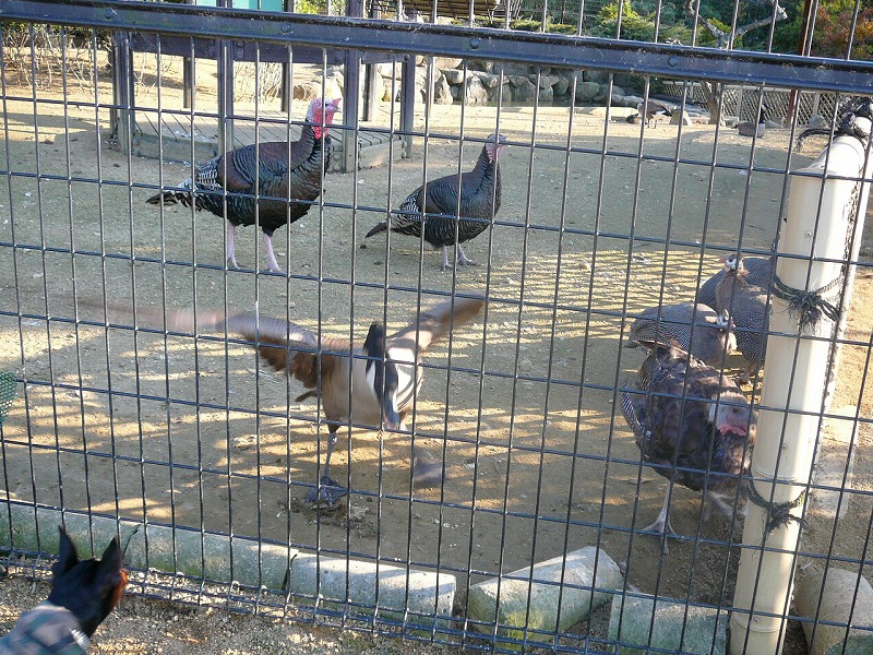 鳥エリアで、チャムが勢いつけて金網に突進したので、鳥たちが驚き退散していってしまいました~;