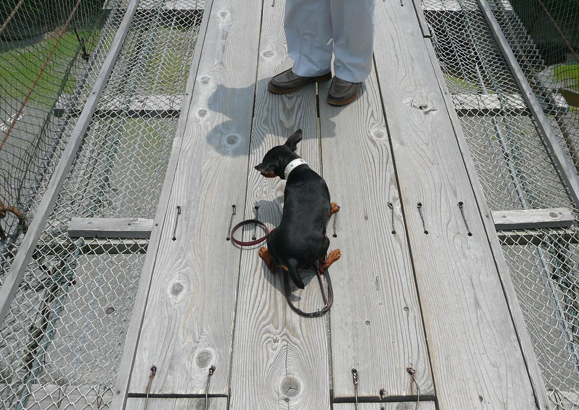 丈夫なワイヤーで釣られている安心感はあれど、足元は木の板。