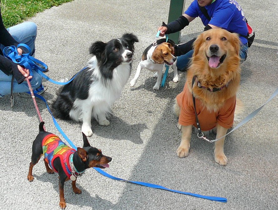 ゴールデンのレオン君とビーグルのメグちゃんです♪