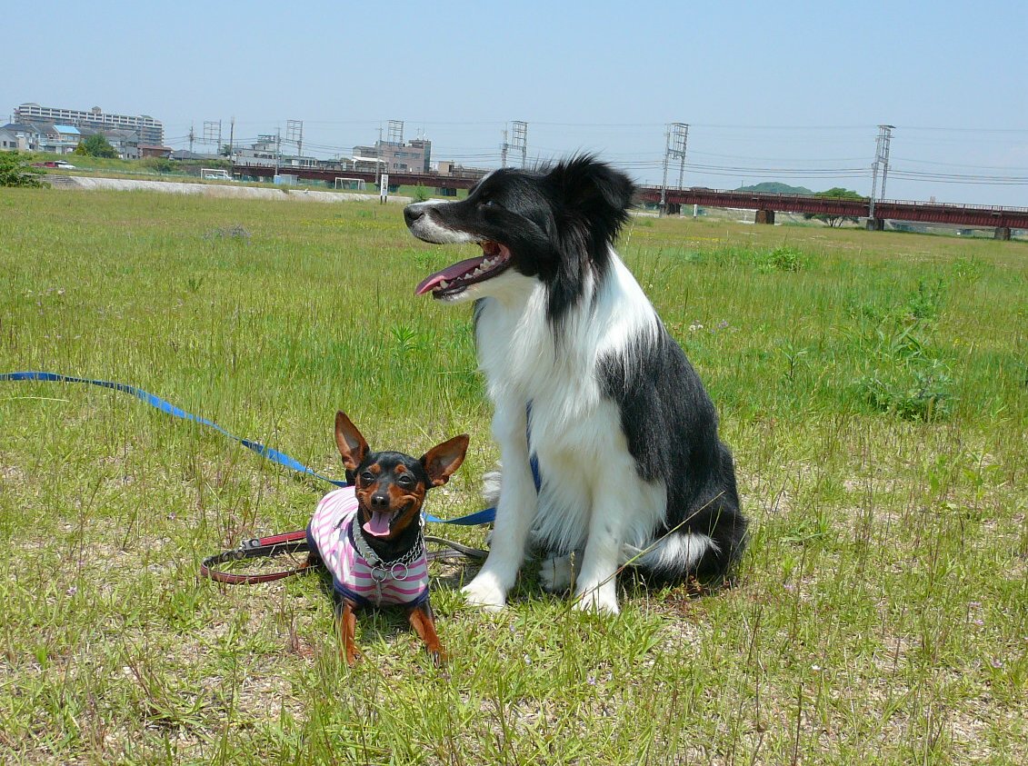 いつもの河川敷公園、先に来ていたロッキー君と合流しました^^