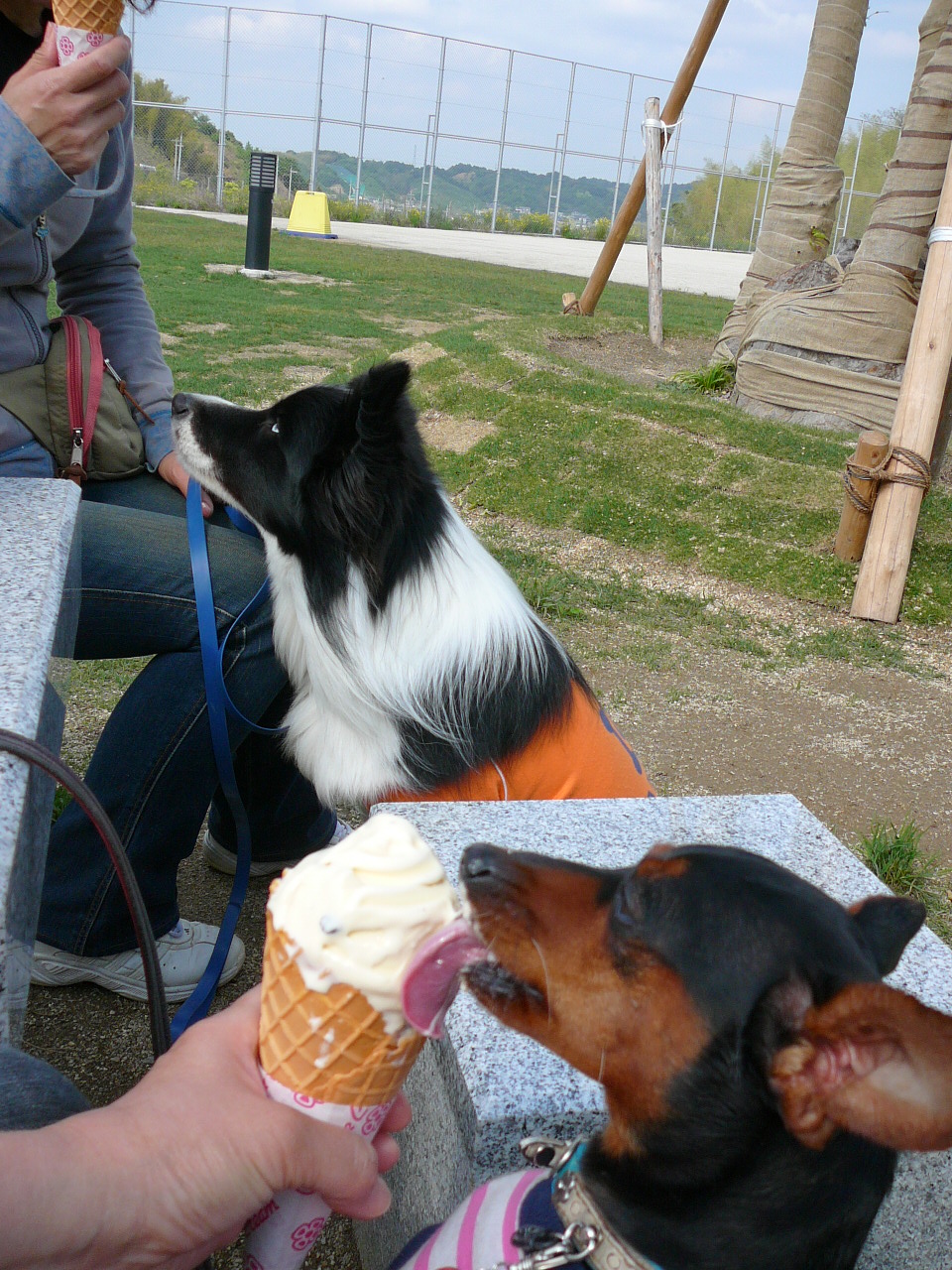 公園のベンチでロッキーママと昼食、気持ちいいね~、楽しいね~となっていたのですが…