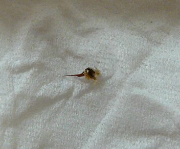 チャムの足に刺さっていたブツ。(かなり大きく見えますが、針の部分は2mmほどです)